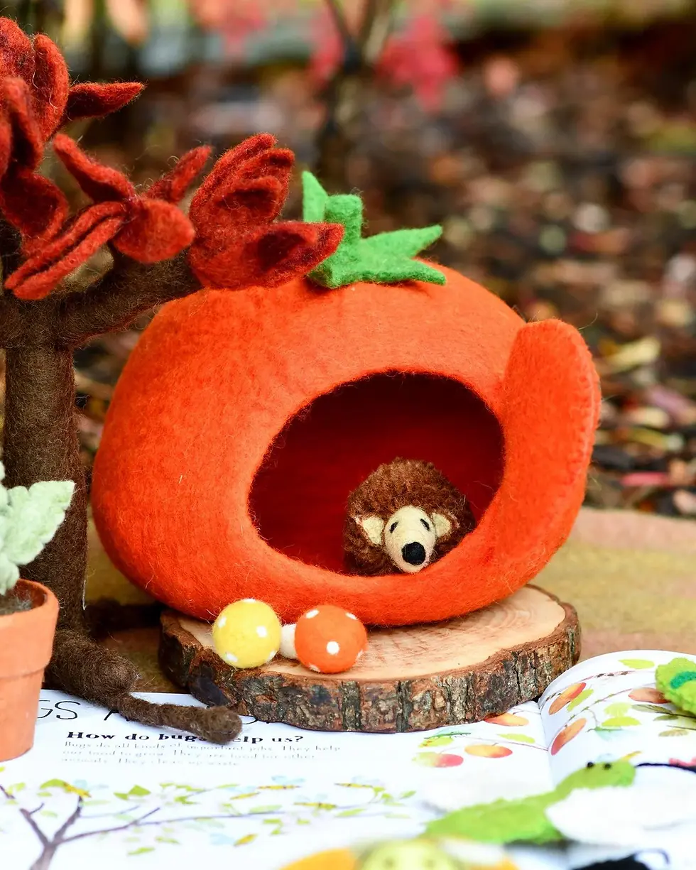 Felt Apple House with Hedgehog Doll